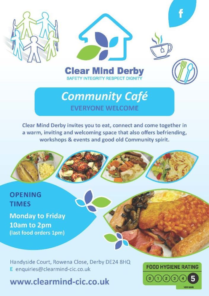 The Clear Mind Derby Community Cafe is now open 5 days a week.