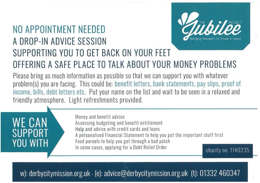 Derby City Mission's Jubilee Clinic in Chaddesden offer a dedicated space for expert debt and benefits advice to help you navigate financial challenges.