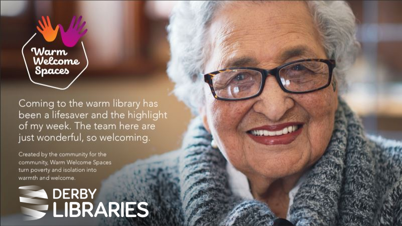 Find a warm space in a library near you at: www.inderby.org.uk/libraries/clubs-and-activities and on the national Warm Welcome map at: www.warmwelcome.uk