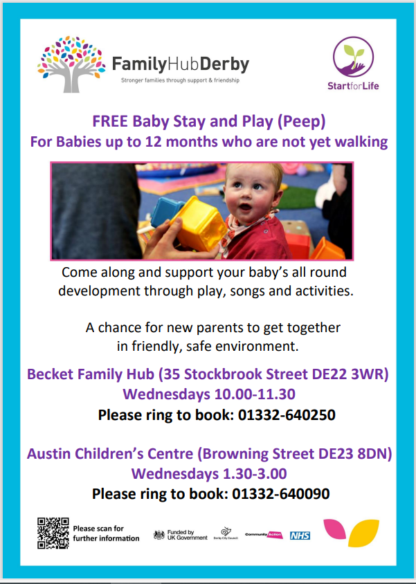 Becket Family Hub (35 Stockbrook Street, DE22 3WR) - Wednesdays 10am - 11:30am. To book this session please ring: 01332 640250