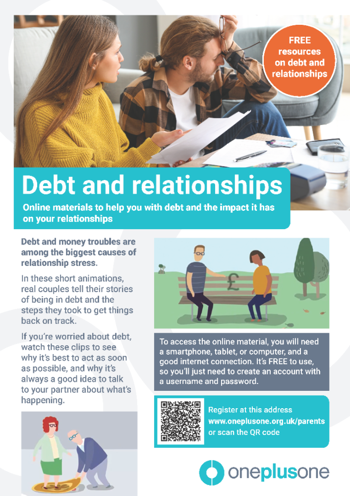 OnePlusOne is a relationship-based research and evidence charity that produces accessible online support tools for parents. They are offering free online materials to help you with debt and the impact it has on your relationships.