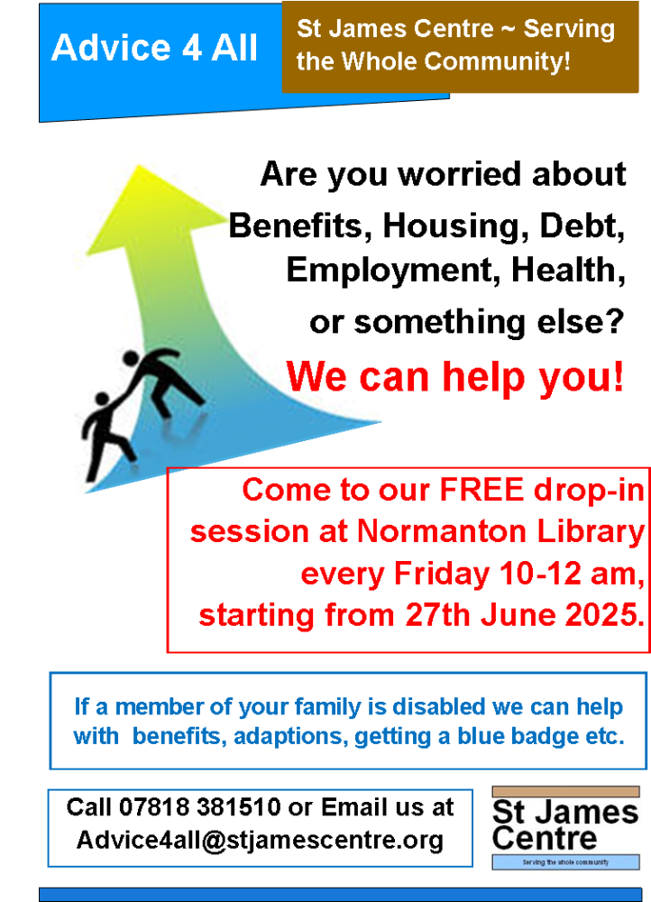 For more information, call the St James Centre on 07818381510 or email advice4all@stjamescentre.org