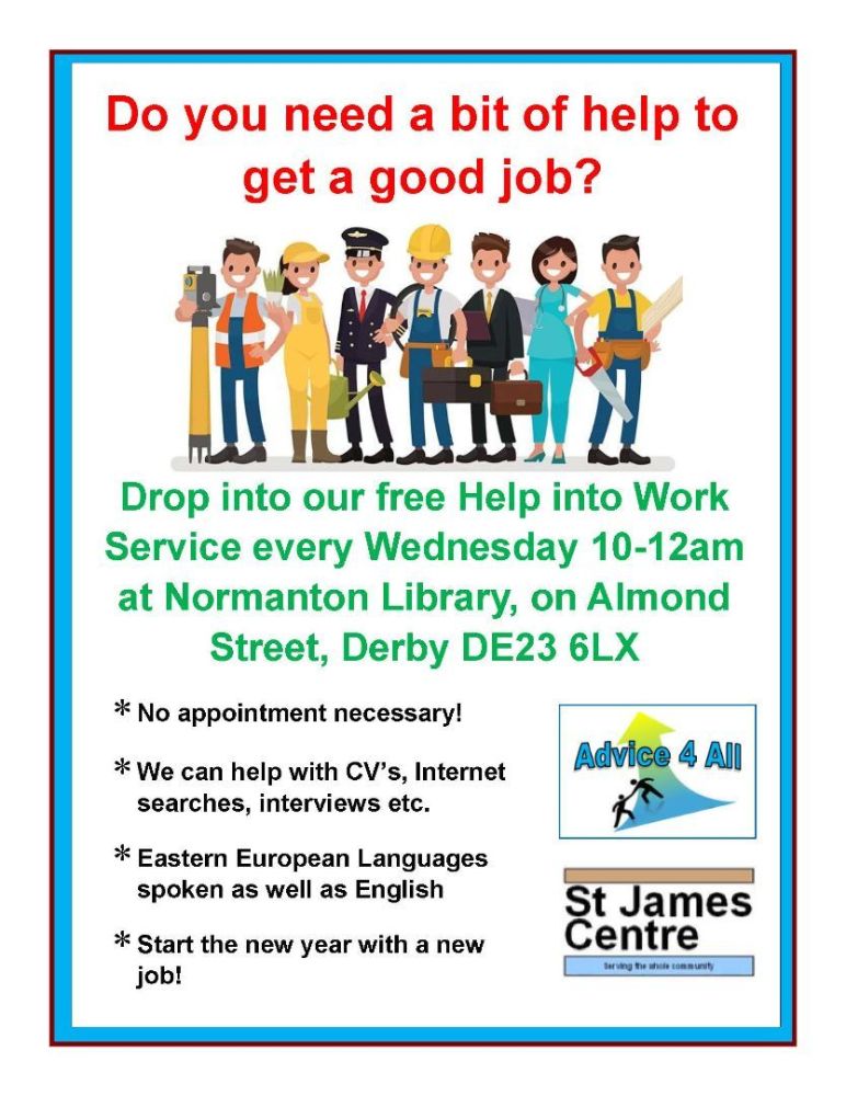 Do you need a bit of help to get a good job? Drop in to St James Centre's free Help into Work Service!
