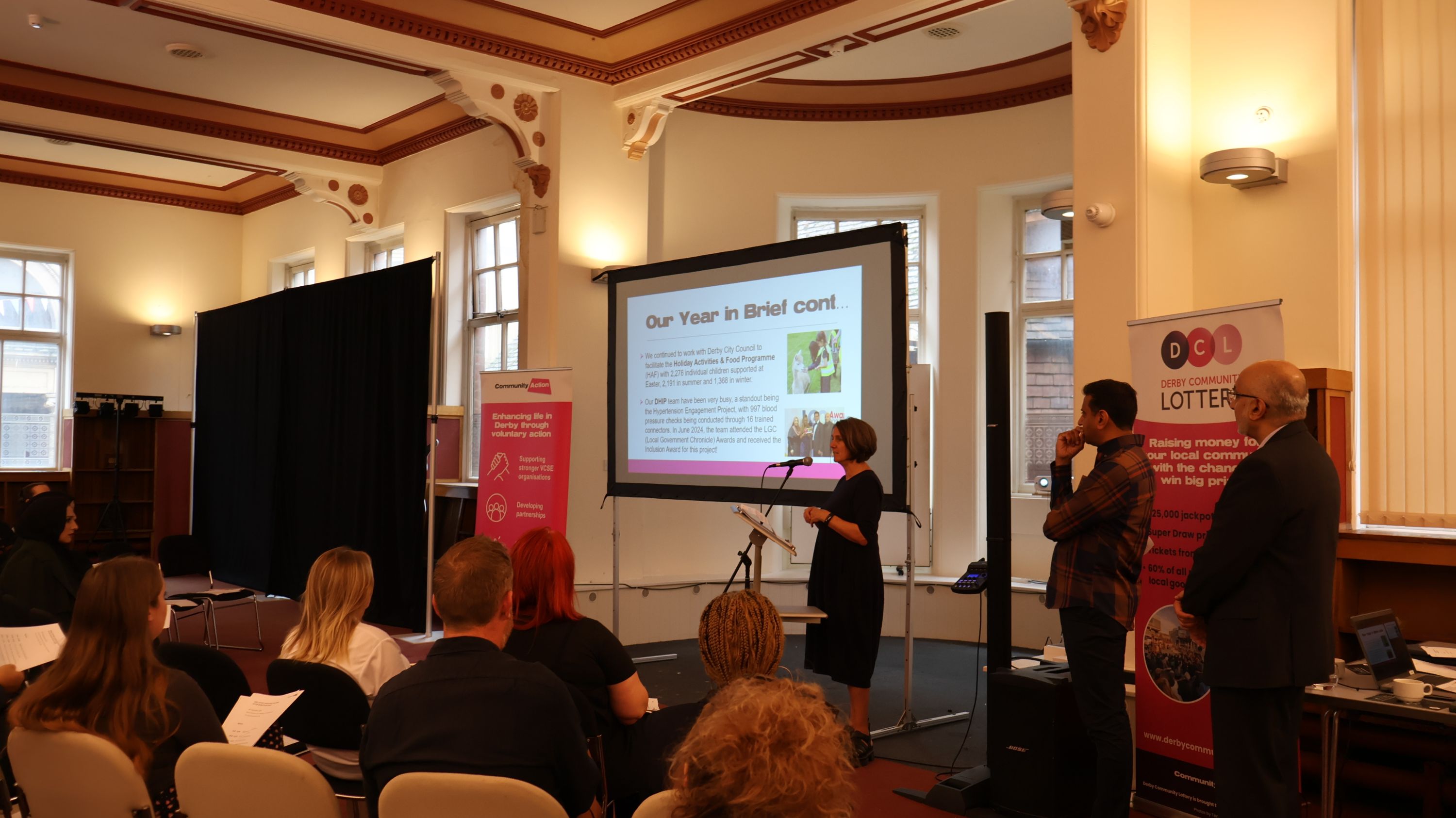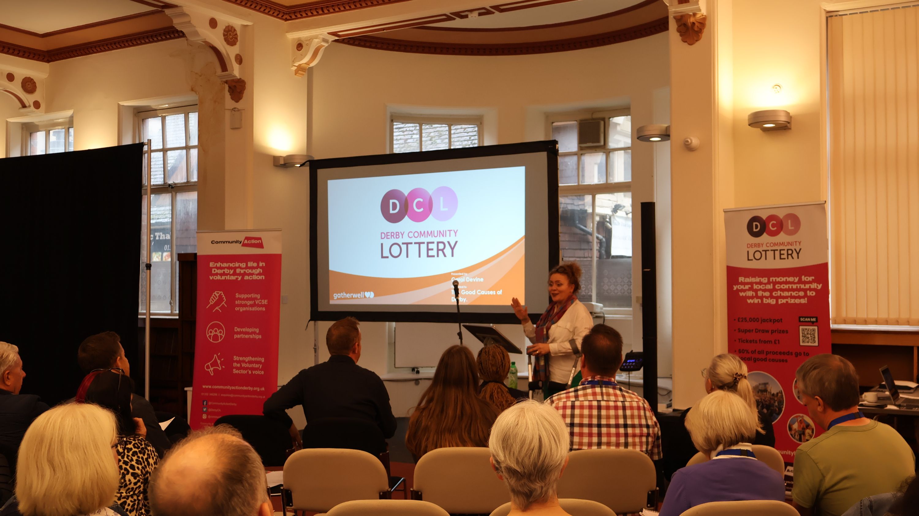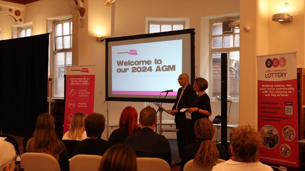 Next came the much-anticipated launch of the Derby Community Lottery. Carol Devine from lottery management organisation Gatherwell gave an insightful presentation on how the lottery works, the benefits for local good causes, and how to register. She also emphasised the advantage of good causes registering within the first week of ticket sales to maximise donations. After the presentation, CA staff were on hand to assist the first wave of good causes to sign up.