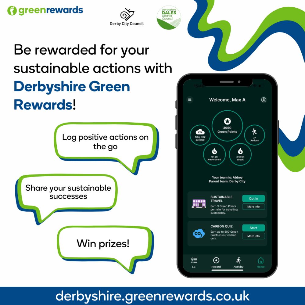 Derby City Council has just launched Derbyshire Green Rewards because small actions, like recycling, choosing active travel, or saving energy all add up to a big impact. The more activities you complete, the more Green Points you earn and the higher you climb up the leaderboard.