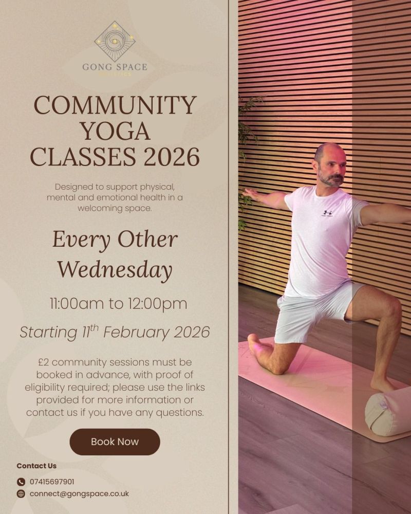 - 11 February - www.gongspace.co.uk/event-details/community-yoga-for-wellbeing-yoga-for-all-2026-02-11-11-00