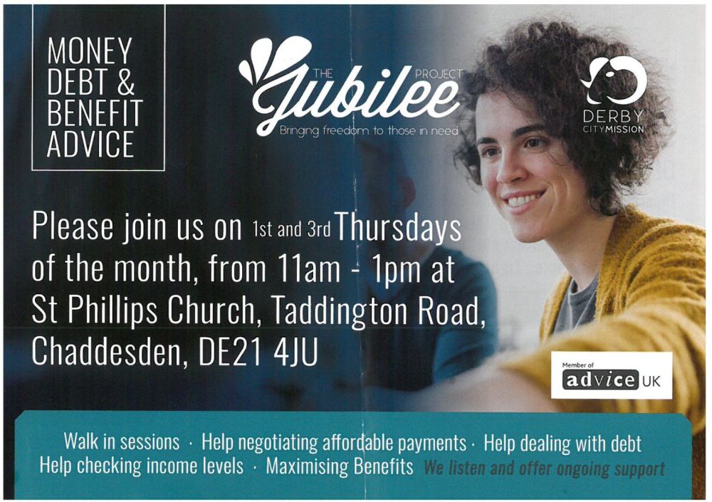 Derby City Mission's Jubilee Clinic in Chaddesden offer a dedicated space for expert debt and benefits advice to help you navigate financial challenges.