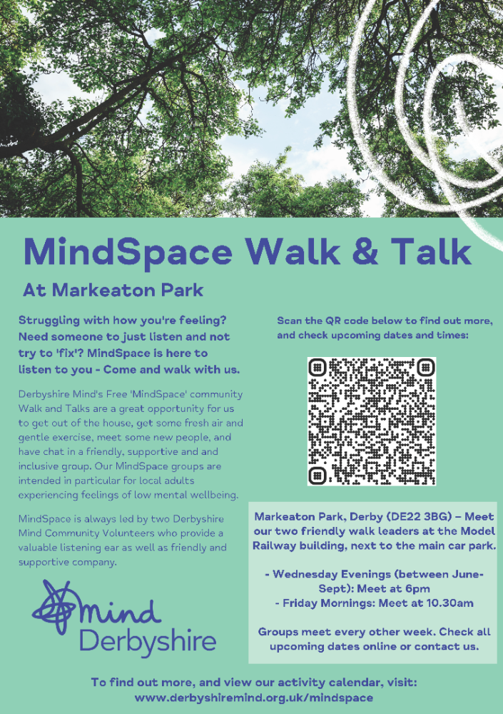 To find out more, and view Derbyshire Mind's activity calendar, visit: www.derbyshiremind.org.uk/mindspace