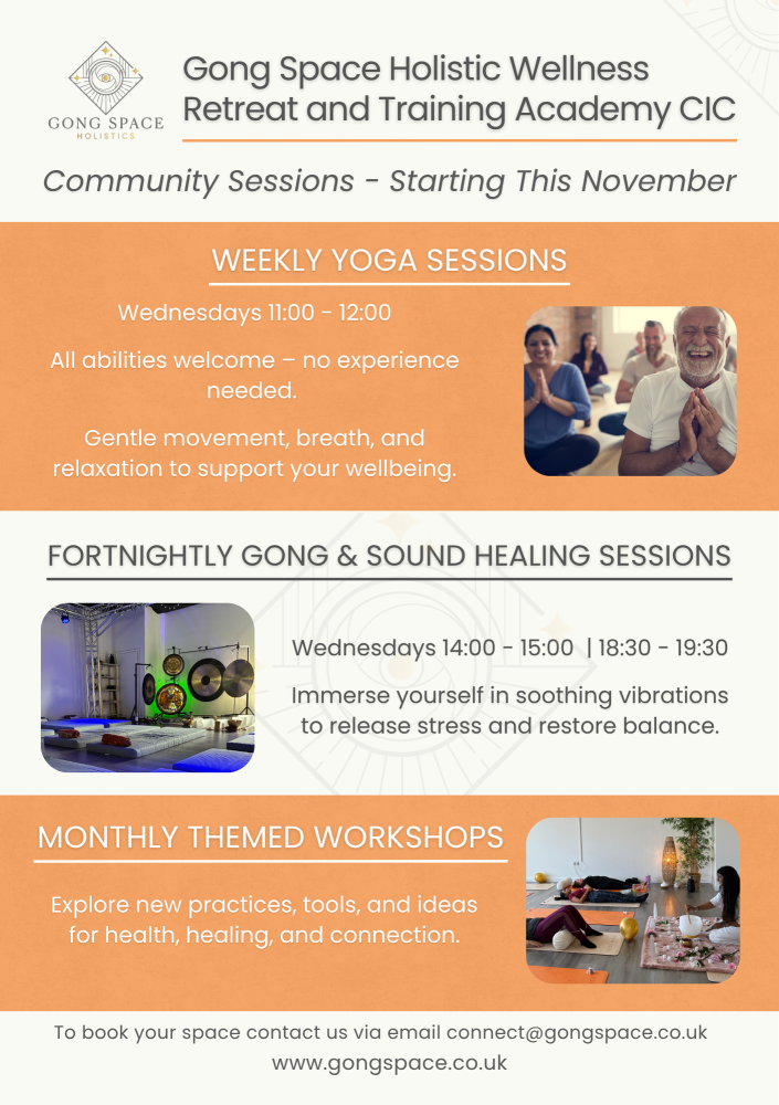 Gong Space CIC is launching new Community Wellbeing Sessions this November with reduced pricing for eligible individuals.