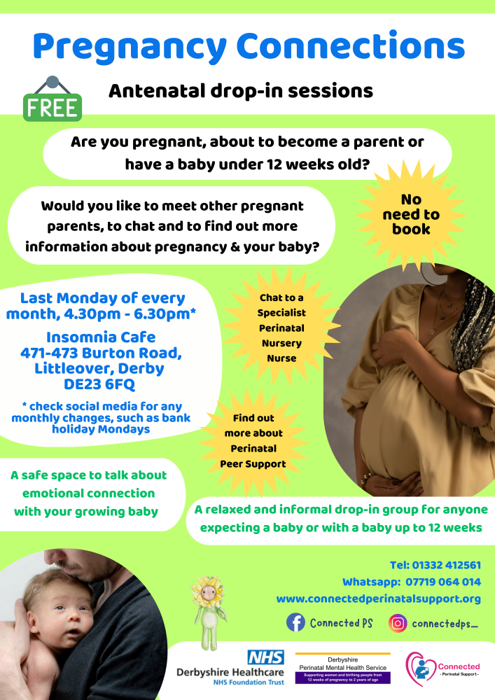 Connected Perinatal Support and Derbyshire Perinatal Mental Health Service have partnered to bring a free antenatal focused community group to Derby! The group is suitable for any expectant parent, including Dads & Non-Birthing Parents, and parents with a baby up to 12 weeks old.